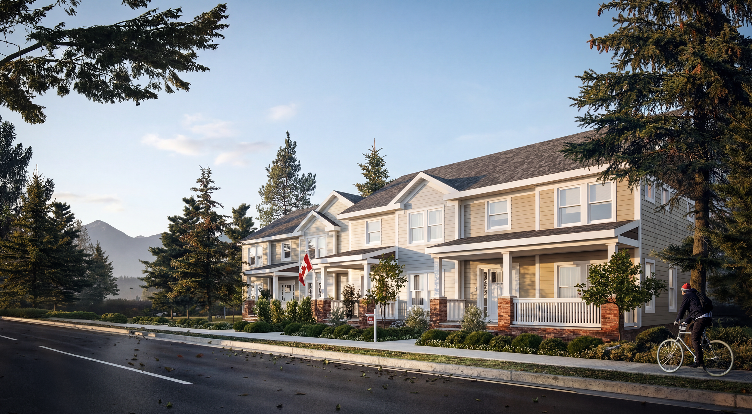 The Winter Scenes: By visualizing the townhouses blanketed in crisp, pristine snow, we created a striking contrast that evokes a sense of quiet luxury, safety, and deep interior coziness against the cold exterior.